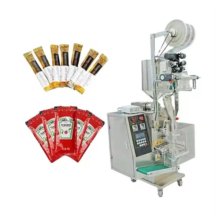 1La macchina di imballaggio delle bustine di salsa consente un funzionamento completamente automatico, completando l'alimentazione, la formazione dei sacchetti, il riempimento, la misurazione, la sigillatura, il taglio, il conteggio, la codifica,e scarico del prodotto in un processo continuo.